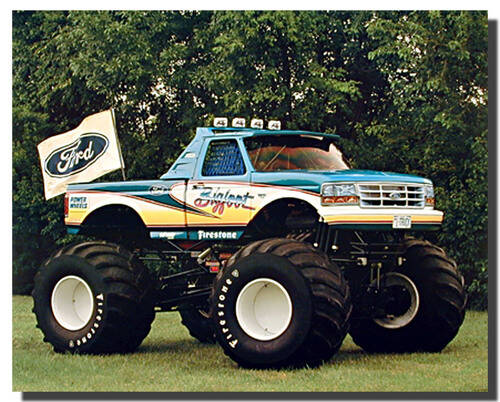 The first MONSTER TRUCK to use, perform and/or accomplish the following: