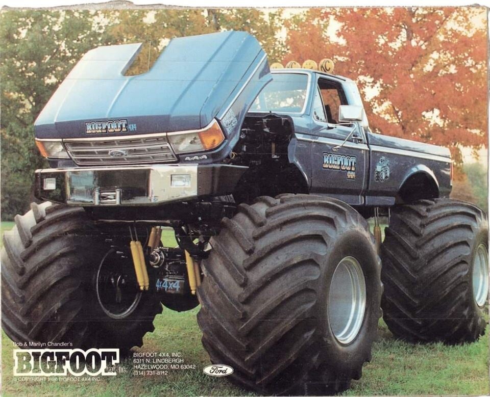 Part of a series of pictures that were created by Terry Hymel to illustrate the differences between the first 5 Bigfoot trucks that have worn the 10ft tires.